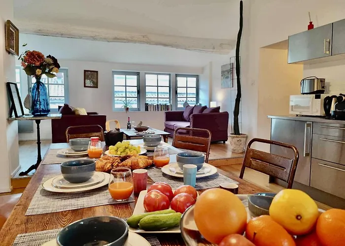 Gli ospiti possono usufruire dei servizi di self-catering di quest'alloggio, tra cui una cucina completamente attrezzata, e gustare i loro pasti in una zona pranzo. Il ristorante Le Bar à Vivres offre cucina italiana a 5 minuti a piedi da questa struttura. Il Loft Chic Verdun / Conciergeriedamecarcas è a breve distanza a piedi dalla stazione degli autobus Pont Vieux.